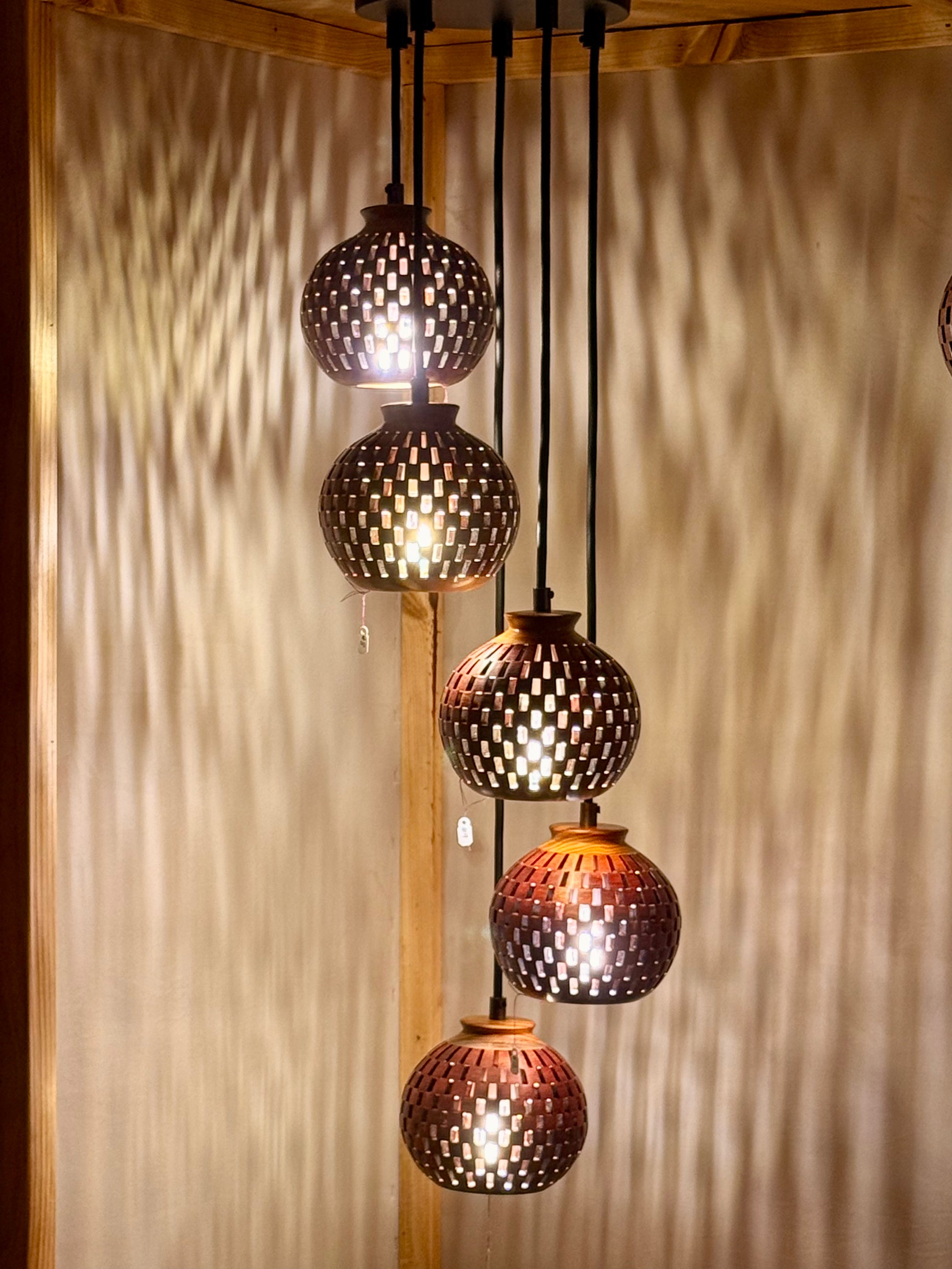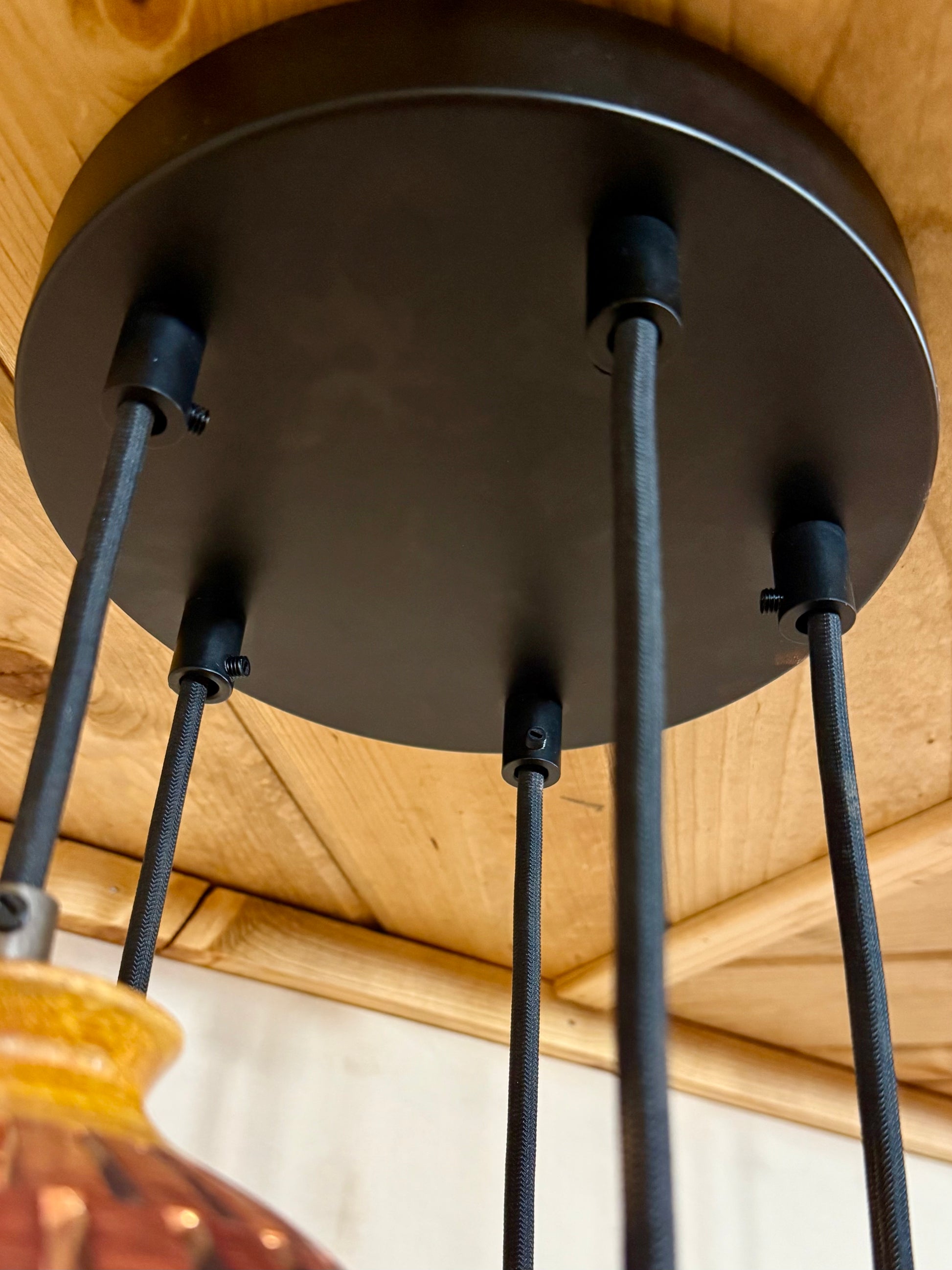 Imagine this in that corner that you just can't do anything with! I hand-picked 5 6-inch pendants from the Bloodwood & Canary collection and hung them from a heavy-duty flat-black 5-port canopy. I'll let the pictures speak for themselves. Personally, this is my favorite configuration!